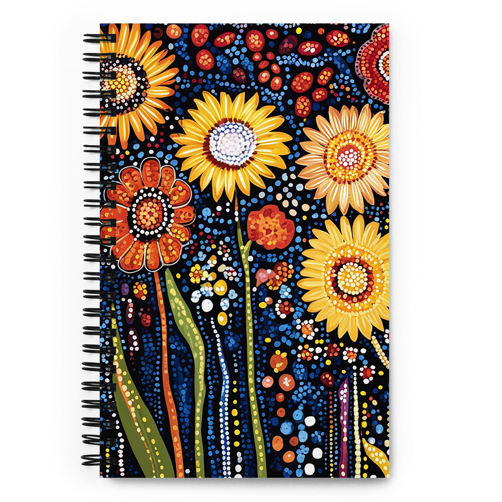Rooted in the rich tradition of Indigenous Australian dot painting, Sunlit Dreaming captures the radiant beauty of desert wildflowers in full bloom. Set against a deep, star-speckled night sky, the golden sunburst flowers, earthy reds, and vibrant greens come alive through a tapestry of intricate dots and flowing forms. Each petal and leaf carry the energy of the land, symbolizing resilience, renewal, and the sacred connection between nature and culture. The rhythmic patterns echo Dreamtime stories, celebrating the life-giving forces of the sun, rain, and earth. This piece is a timeless tribute to the beauty of the Australian Outback.