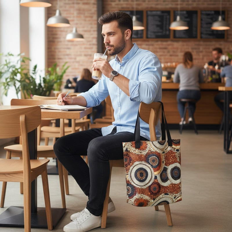 Inspiriert von den uralten Traditionen der indigenen australischen Punktmalerei, verkörpert Sacred Earth die spirituelle Verbindung zwischen Land, Kultur und Erzählkunst. Strahlende Kreise und filigrane Punktformationen symbolisieren die Zyklen des Lebens, das Zusammenkommen von Gemeinschaften und die heiligen Landschaften der Traumzeit. Die warme, organische Farbpalette aus Terrakotta, Lehm und Taupe spiegelt die Fülle sonnenverbrannter Erde wider, während tiefe Anthrazit- und Creme-Akzente für Tiefe und Kontrast sorgen. Dieses Design ist eine visuelle Reise durch Tradition, Erinnerung und den unerschütterlichen Geist des Landes.