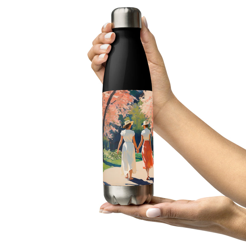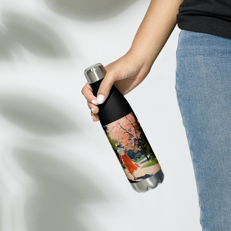 Keep your drinks hot or cold wherever you go with our stainless steel bottle, now offering FREE SHIPPING to the US, Canada, EU, and UK.   The artwork   A picturesque walk amidst nature’s bloom, this artwork captures the essence...