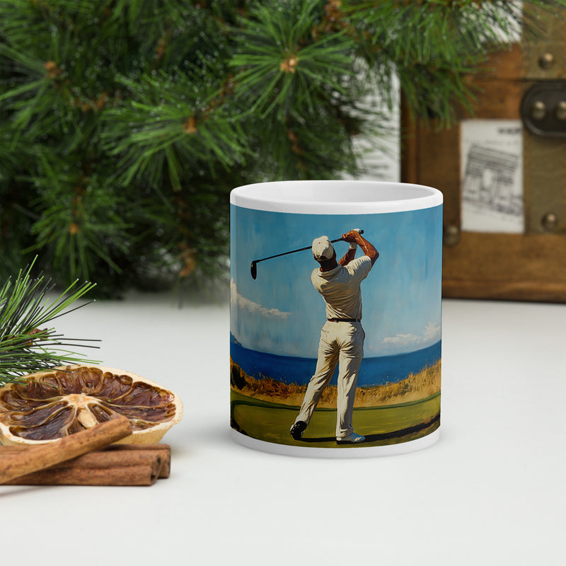 Coastal Drive captures the elegance of a perfect golf swing against a serene ocean backdrop. This golf art piece embodies focus and tranquility, making it ideal for golf enthusiasts and art lovers alike.