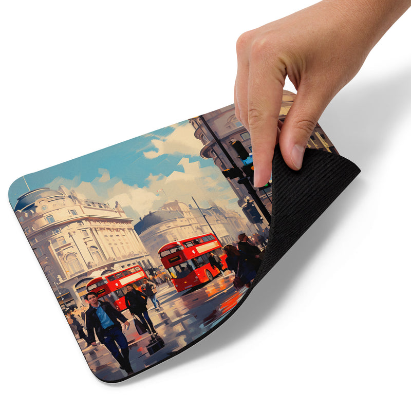 Esta obra capta la esencia de la ajetreada vida londinense, mostrando los icónicos autobuses rojos de dos pisos, la arquitectura histórica y a los peatones inmersos en su rutina diaria. La pieza es una armoniosa mezcla de elementos tradicionales y contemporáneos, encapsulando la energía vibrante y el encanto atemporal de Londres.