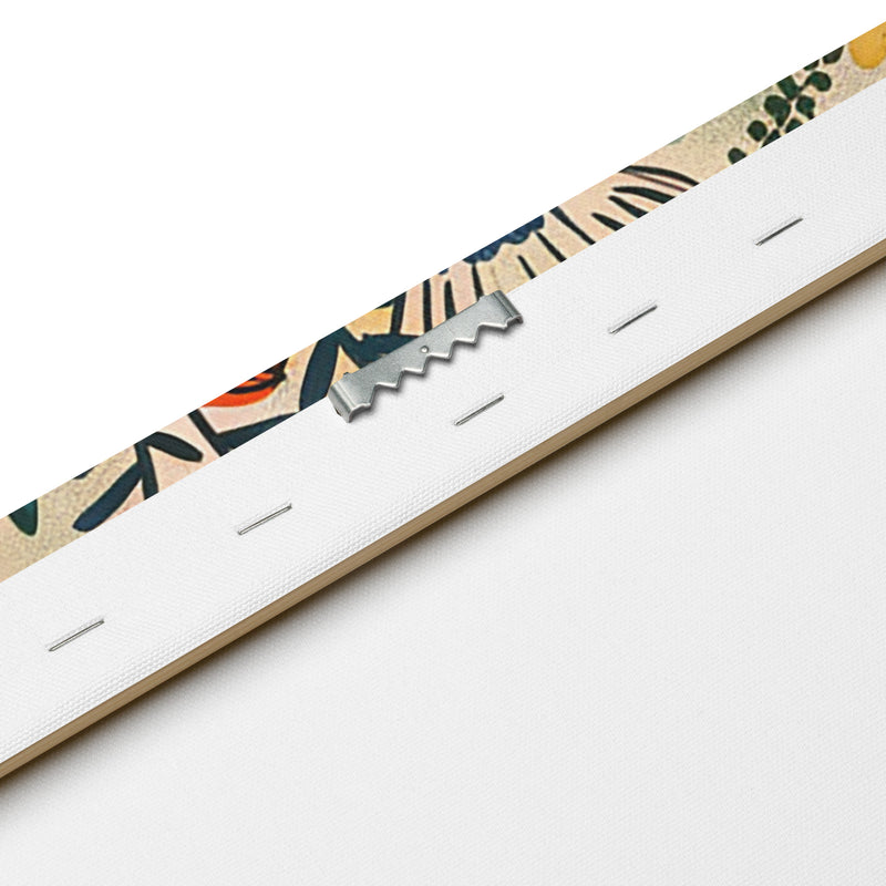 Equipado con soportes de pared preinstalados y almohadillas de goma en la parte trasera, el lienzo llega listo para colgar. Más delgado que los lienzos tradicionales, es una opción elegante para cualquier habitación.