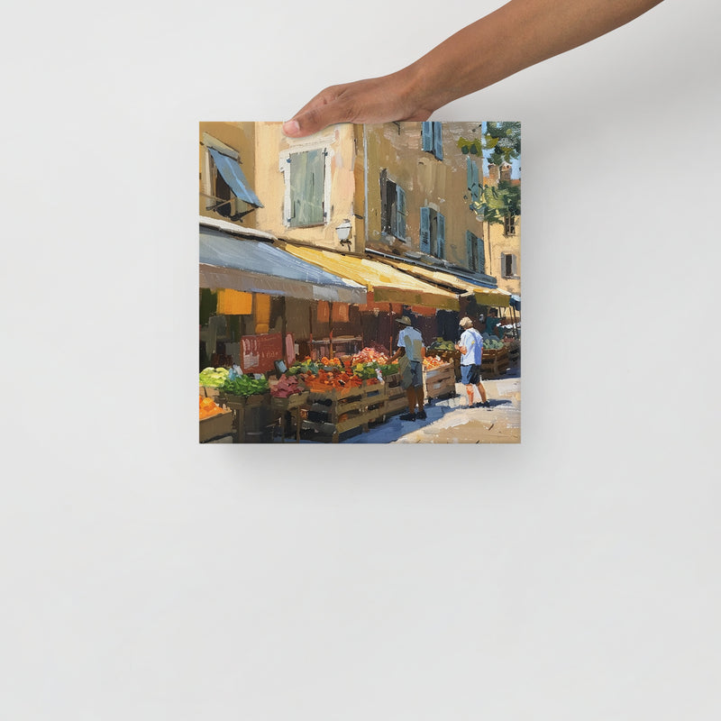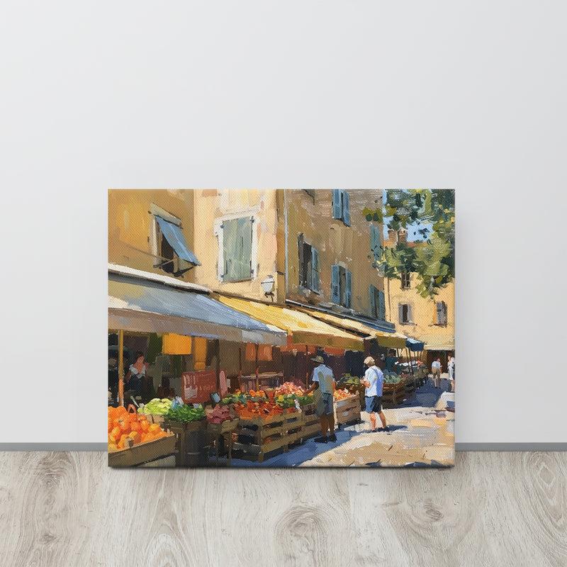 Pasea por las calles bañadas por el sol de la Provenza, donde los dorados edificios brillan bajo la luz, proyectando un cálido resplandor sobre el bullicioso mercado. Los productos frescos y coloridos están dispuestos de manera artística, invitando a los transeúntes a saborear los ricos sabores y aromas de esta pintoresca región francesa.