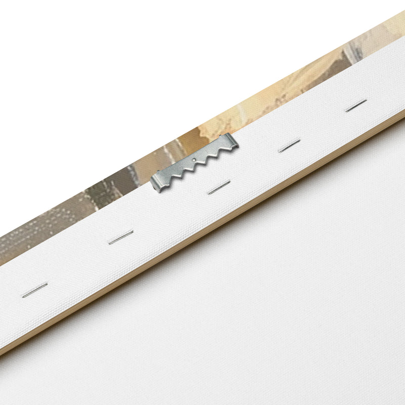 Equipado con soportes de pared preinstalados y almohadillas de goma en la parte trasera, el lienzo llega listo para colgar. Más delgado que los lienzos tradicionales, es una opción elegante para cualquier habitación.