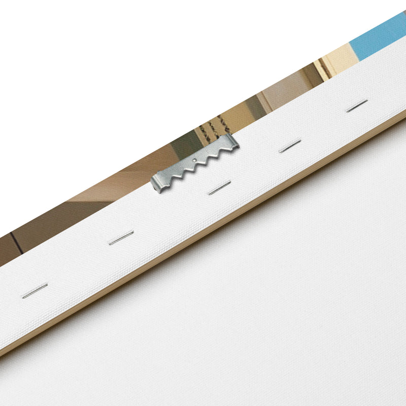 Equipado con soportes de pared preinstalados y almohadillas de goma en la parte trasera, el lienzo llega listo para colgar. Más delgado que los lienzos tradicionales, es una opción elegante para cualquier habitación.