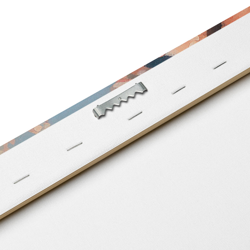 Equipado con soportes de pared preinstalados y almohadillas de goma en la parte trasera, el lienzo llega listo para colgar. Más delgado que los lienzos tradicionales, es una opción elegante para cualquier habitación.