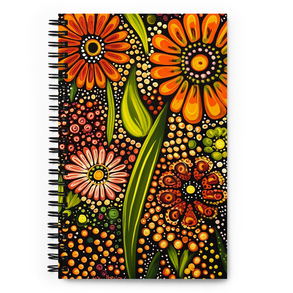 Radiating warmth and vitality, Flourishing Earth is a mesmerizing Indigenous Australian dot painting that celebrates the untamed beauty of outback desert flowers. The rich hues of rusty orange, burgundy, and lime green dance across a deep, cosmic backdrop, symbolizing the life force that thrives in arid landscapes. Delicate floral forms emerge through intricate dot work, weaving together ancestral stories of renewal, resilience, and the deep spiritual connection to the land. This artwork embodies the vibrancy of wildflowers, the whispers of the Dreamtime, and the eternal cycle of nature.