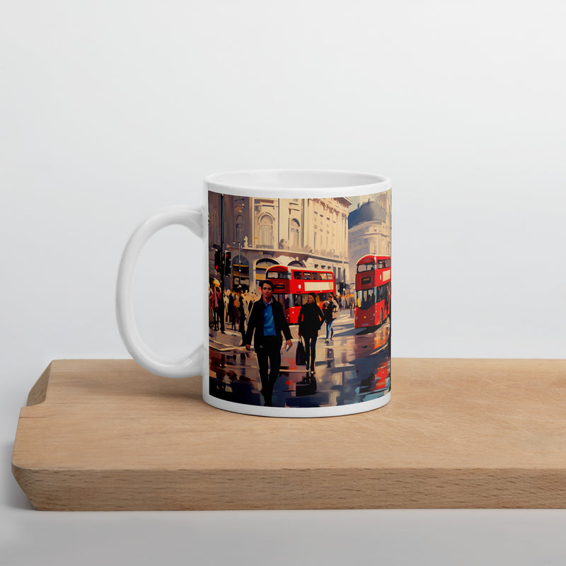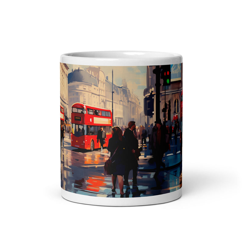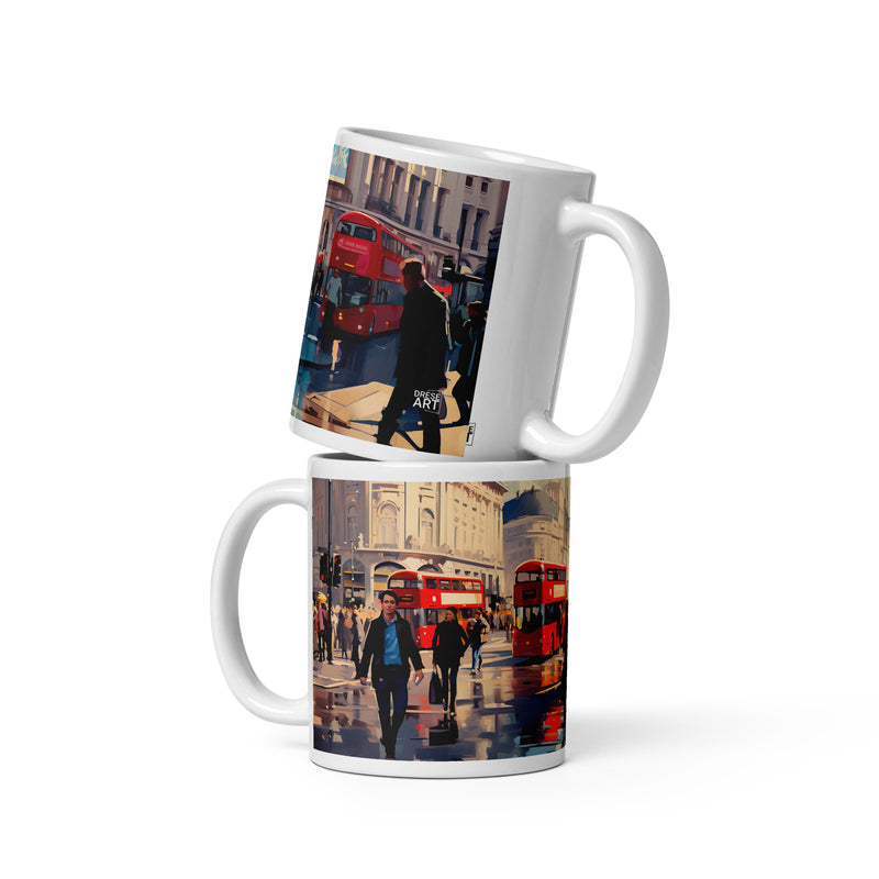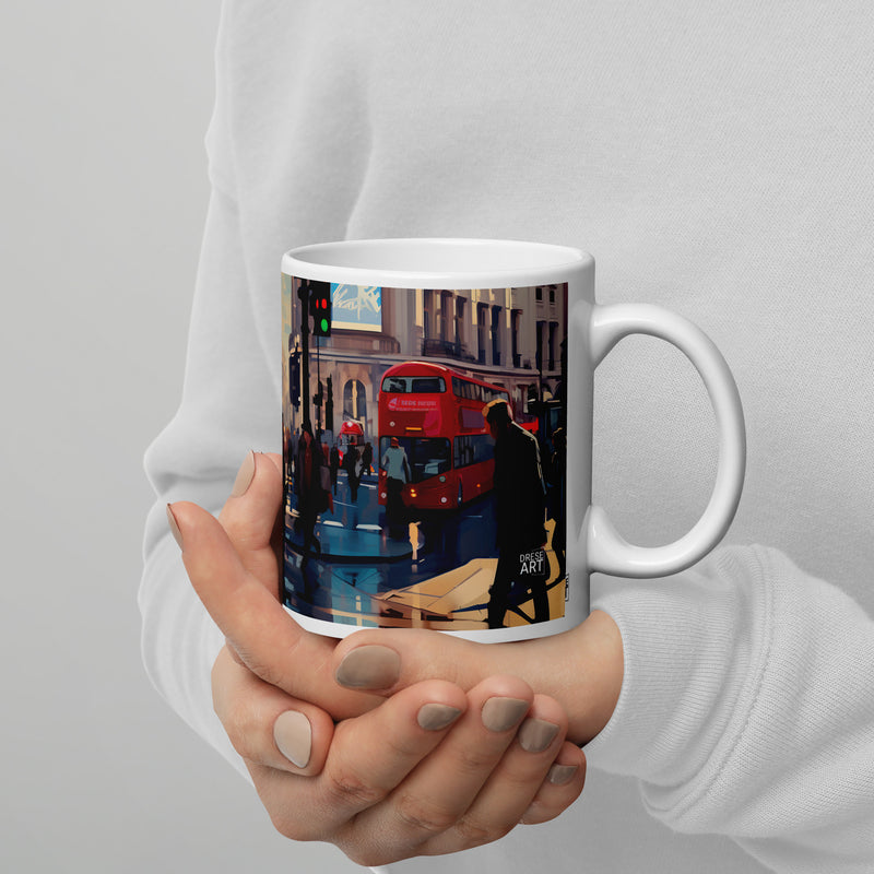 Esta obra capta la esencia de la ajetreada vida londinense, mostrando los icónicos autobuses rojos de dos pisos, la arquitectura histórica y a los peatones inmersos en su rutina diaria. La pieza es una armoniosa mezcla de elementos tradicionales y contemporáneos, encapsulando la energía vibrante y el encanto atemporal de Londres.