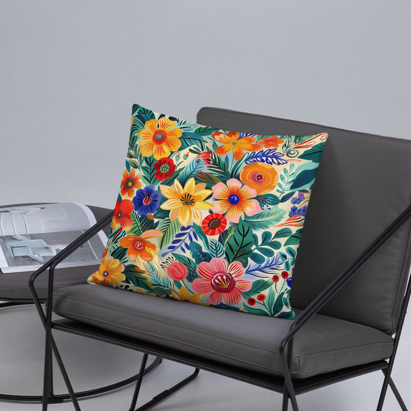 Cette œuvre rend hommage à la flore espagnole, présentant une vibrante variété de fleurs indigènes de la péninsule Ibérique. Des tons riches d’orange, des rouges intenses, des jaunes ensoleillés et des bleus éclatants se mêlent parfaitement à un feuillage vert luxuriant. Les coups de pinceau stylisés et les contrastes dynamiques reflètent la chaleur et la culture vibrante de l’Espagne, évoquant le charme d’un jardin espagnol.