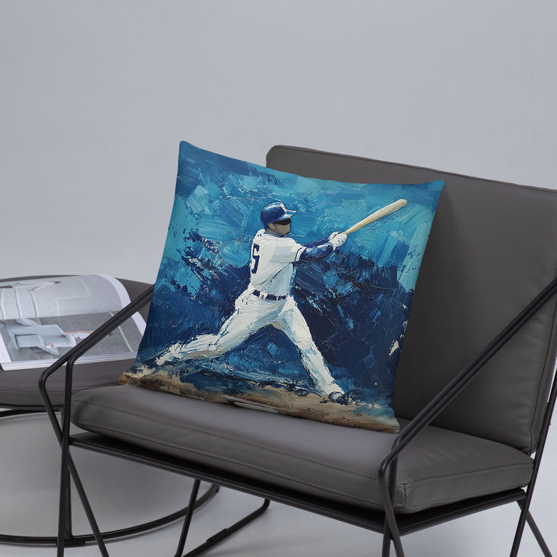 Frozen Swing capture la puissance et la grâce du baseball en mouvement. Avec des coups de pinceau audacieux et des tons bleu profond, cette œuvre sportive incarne l’intensité et la concentration du swing d’un joueur. Une pièce dynamique et sportive qui apporte énergie et inspiration à tout espace.