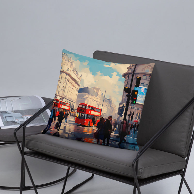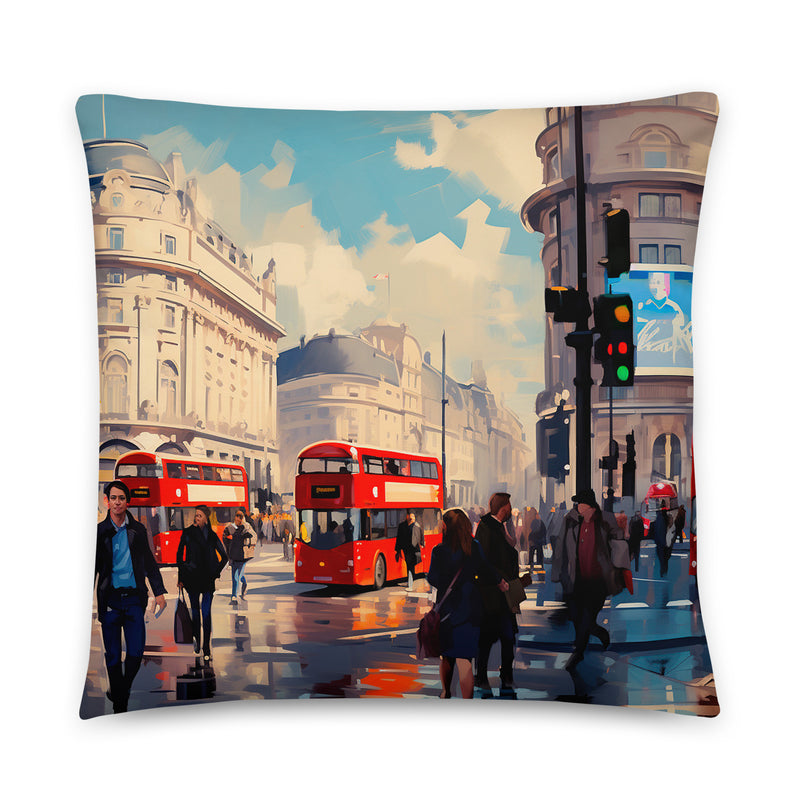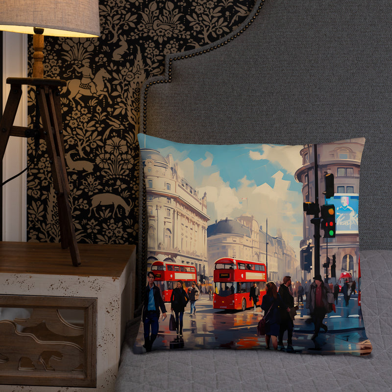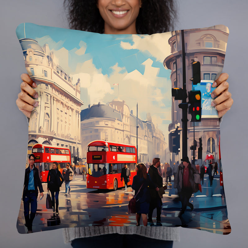 Cette œuvre capture l’essence de la vie trépidante londonienne, montrant les bus rouges à impériale emblématiques, l’architecture historique et les piétons immergés dans leur routine quotidienne. La pièce est un mélange harmonieux d’éléments traditionnels et contemporains, encapsulant l’énergie vibrante et le charme intemporel de Londres.