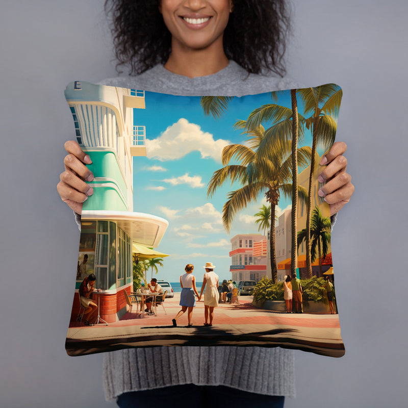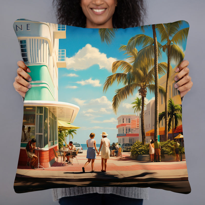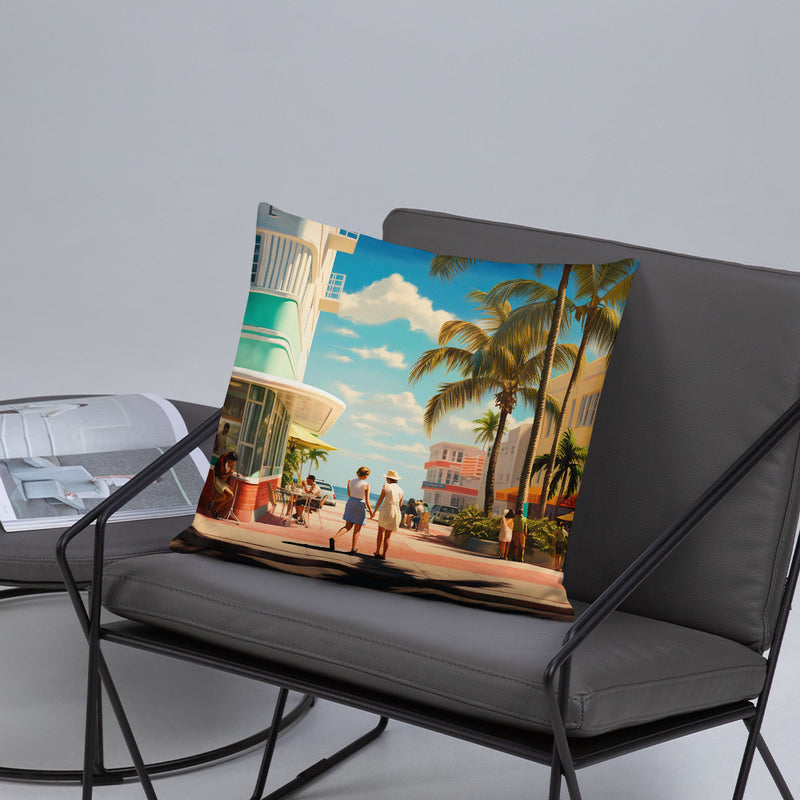 Vivez la magie de Miami Beach dans cette œuvre qui illustre le style art déco et la culture vibrante de la ville. Des palmiers aux voitures classiques, cette pièce vous transporte dans un paradis ensoleillé où tout semble possible.