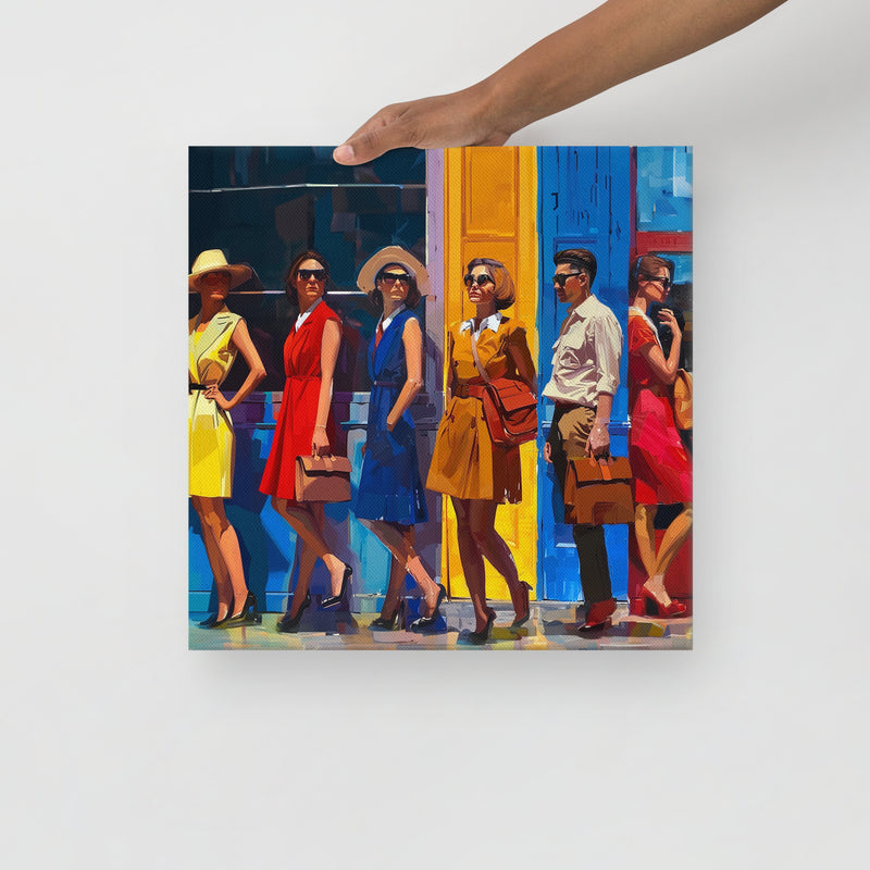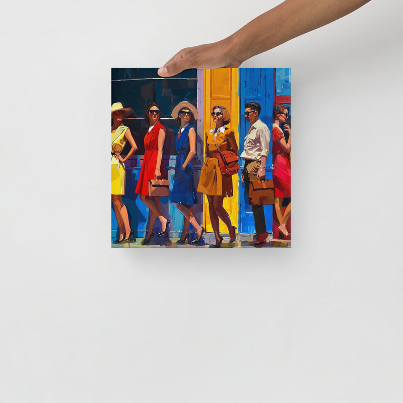 This artwork captures SoHo’s eclectic style and dynamic atmosphere. Every brush stroke paints a tale of fashion-forward individuals against iconic cast-iron architecture, embodying the city’s creative spirit.