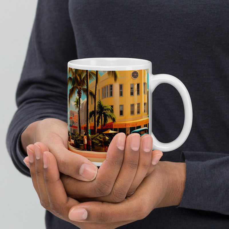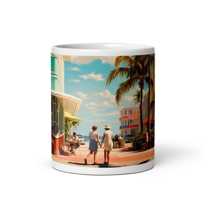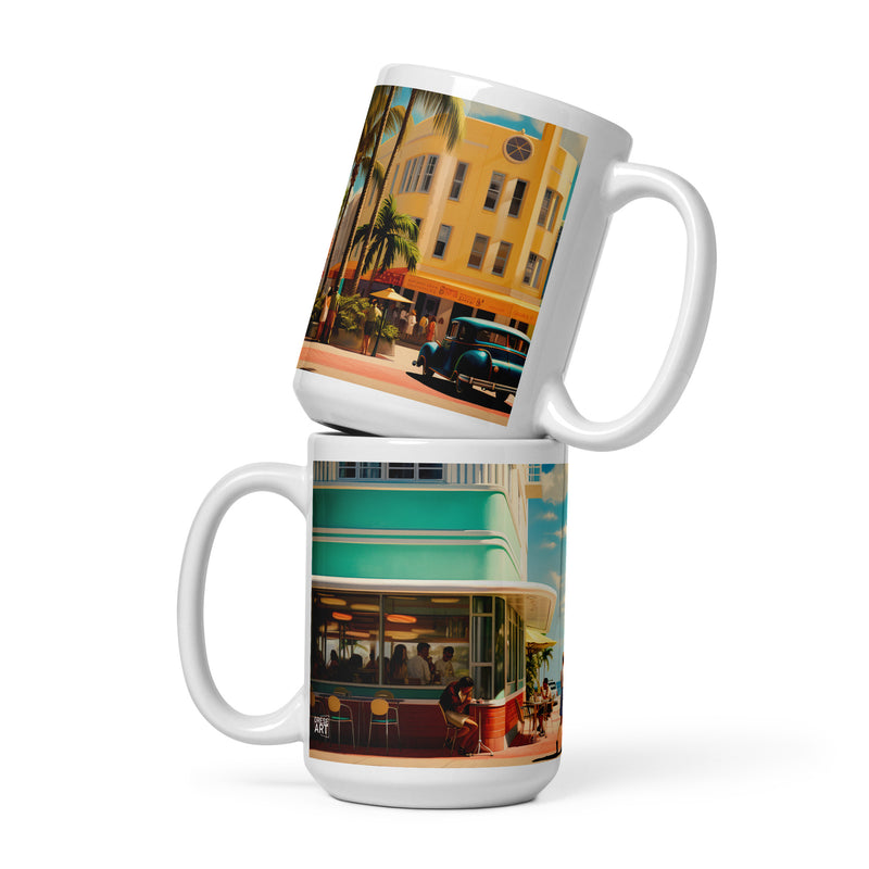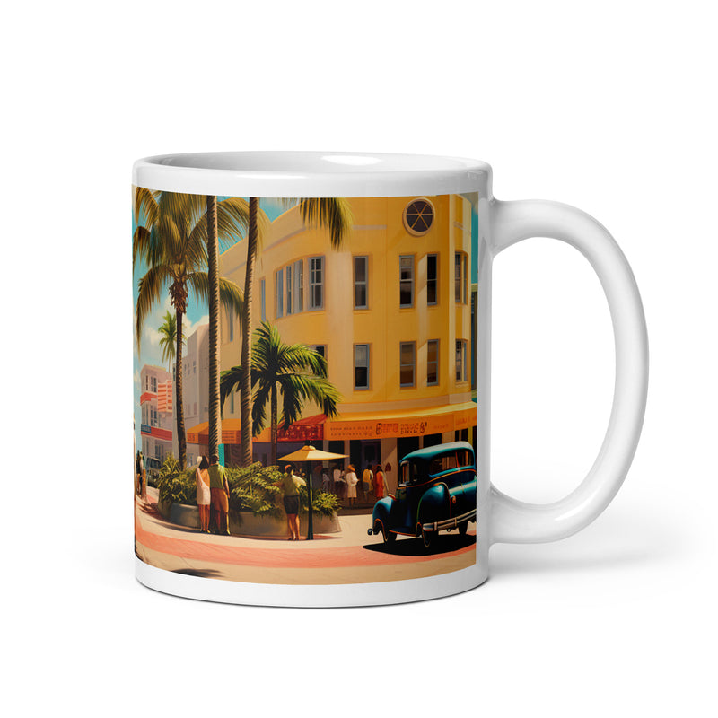 Experience the magic of Miami Beach in this artwork that showcases the art deco style and the vibrant culture of the city. From the palm trees to the classic cars, this piece transports you to a sunny paradise where anything is possible.