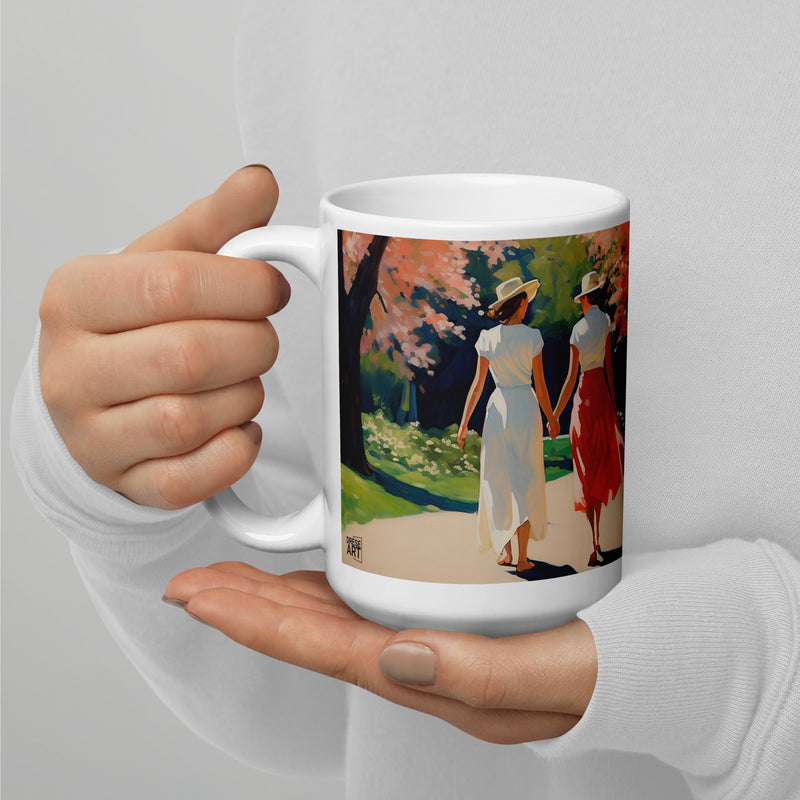 A picturesque walk amidst nature’s bloom, this artwork captures the essence of spring. Two women stroll under a canopy of cherry blossoms, symbolizing renewal and grace. Each brushstroke reflects the beauty and harmony of nature’s awakening, offering a sense of calm and inspiration.