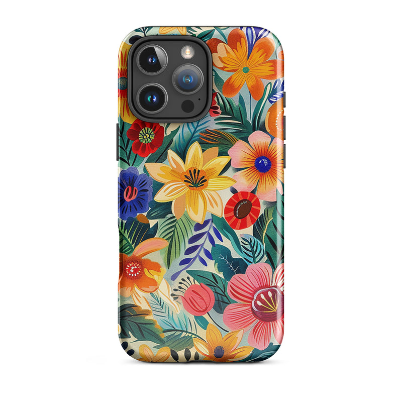 This artwork is a lively tribute to Spanish flora, showcasing a vibrant array of blooms native to the Iberian Peninsula. Rich oranges, deep reds, sunny yellows, and striking blues blend seamlessly with lush green foliage. Stylized brushstrokes and dynamic contrasts capture the warmth and cultural vibrancy of Spain, evoking the charm of a Spanish garden.