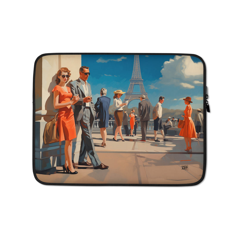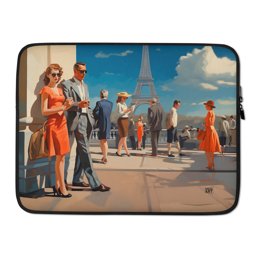 Immerse yourself in the elegance of a bygone era, captured in this artwork featuring chic figures admiring the iconic Eiffel Tower. The vibrant colors and classic fashion evoke the timeless charm of Paris, making this piece a perfect addition for art enthusiasts and lovers of the City of Light.